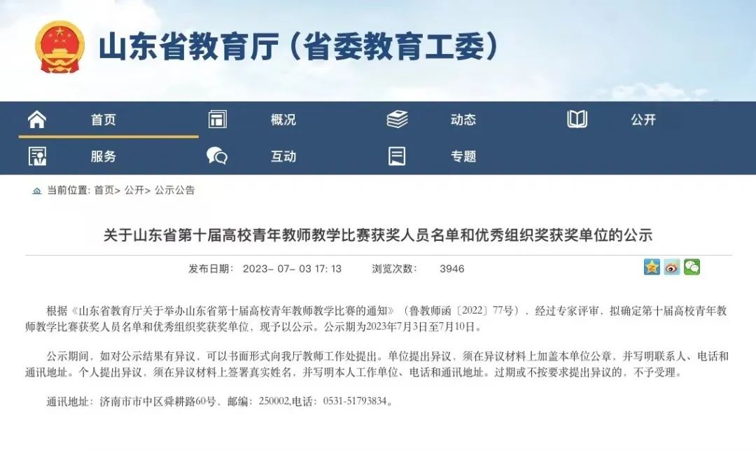 近日,山东省教育厅、山东省教育工会委员会公布省第十届高校青年教师教学比赛获奖名单,bat365官网青年教师李媛媛在全省151所高校、600余名教师中脱颖而出,从教学设计到教学展示再到教学反思,得到评委老师的一致好评,最终喜获一等奖。