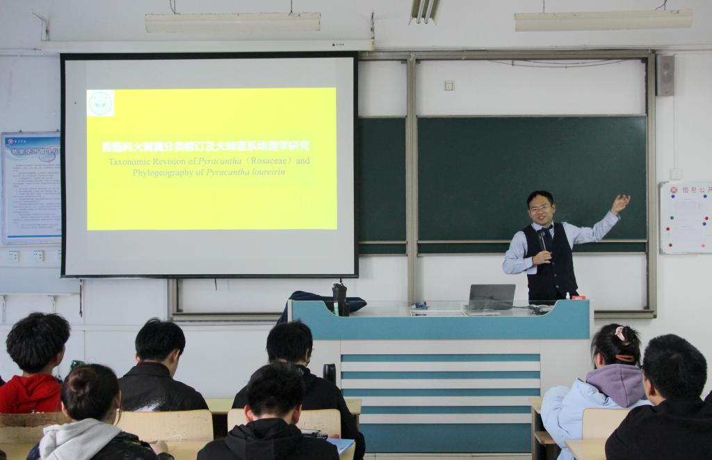 为增进同学们对植物科学的理解,拓展学生的专业知识视野,bat365在线中国官网登录入口安排新入职教师冯慧喆博士于12月8日在理工楼2218教室为学院21级全体学生作了关于植物分类的学术报告。