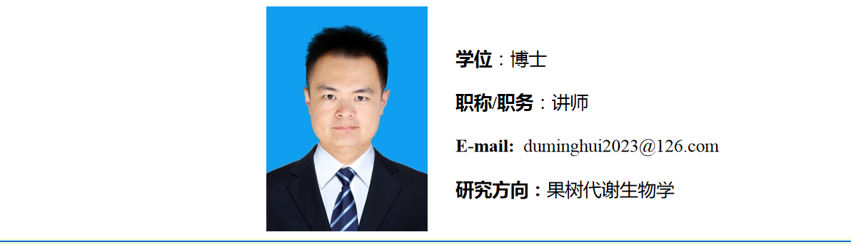 2023年6月毕业于山东农业大学获得园艺学博士学位,同年9月进入bat365在线中国官网登录入口工作。主要从事果树抗逆性的代谢生物学、生理学和分子生物学等的研究。近年来以第一作者和共同作者身份在《Plant Cell and Environment》和《Scientia Horticulturae》等国外学术期刊发表论文两篇。